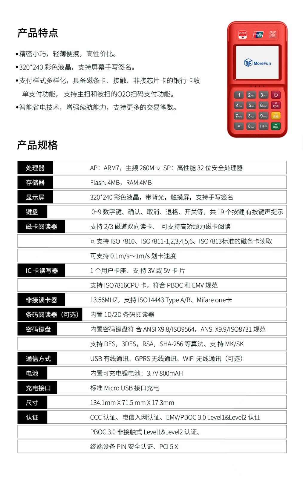 首页>>通州产品中心>>通州手持无线POS 通州电银支付-4G+扫码枪 高配版 * 性能优越:32位高性能ARM11安全CPU;整机通过业内更先进的PCI PED4.X 安全认证及国内受理终端PIN输入设备安全评估检测认证,多项措施保障金融交易的安全;* 时尚外观:外形小巧携带方便,高抗跌落性能、宽工作温度、防水防尘设计、外壳坚固耐刮、户外携带式作业更加耐久可靠。* 通讯备份:支持2G-3G扩展;* 超长续航:3.7V-800毫安稳定续航能力,智能电池管理保证持续工作18小时,待机72小时。 标准配置 返 回